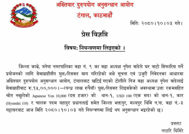 गत पुस १० मा राष्ट्रपतिमा उम्मेदवारी दिएका नेेम्वाङलाई नेपाली कांग्रेसका नेता रामचन्द्र पौडेलले पराजित गरेका थिए ।